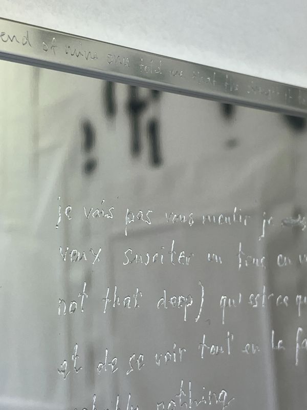 text engraved on aluminium frames and mirrors